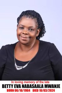 Betty Eve Nabasaala Mwanje -Born; 10 Oct 1964 ,Died; 18 March 2024